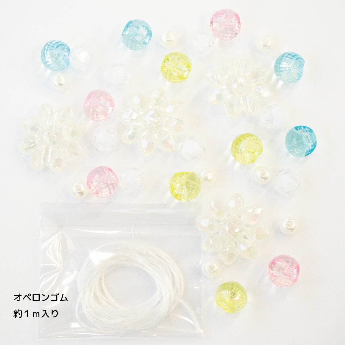 可愛いビーズとオベロンゴムがセットになっている商品で、到着したその日から、オベロンゴムを使って、ブレスレットなどのアクセサリーを作ることが出来ます。