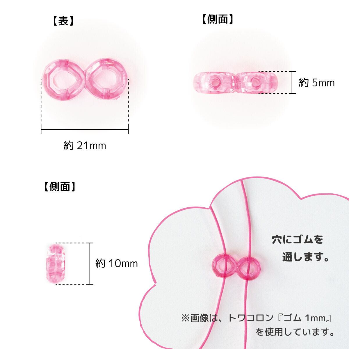 別売りのカラーゴムを使えばゴムが透けてより可愛く仕上がります。 時計パーツとの相性も抜群です!