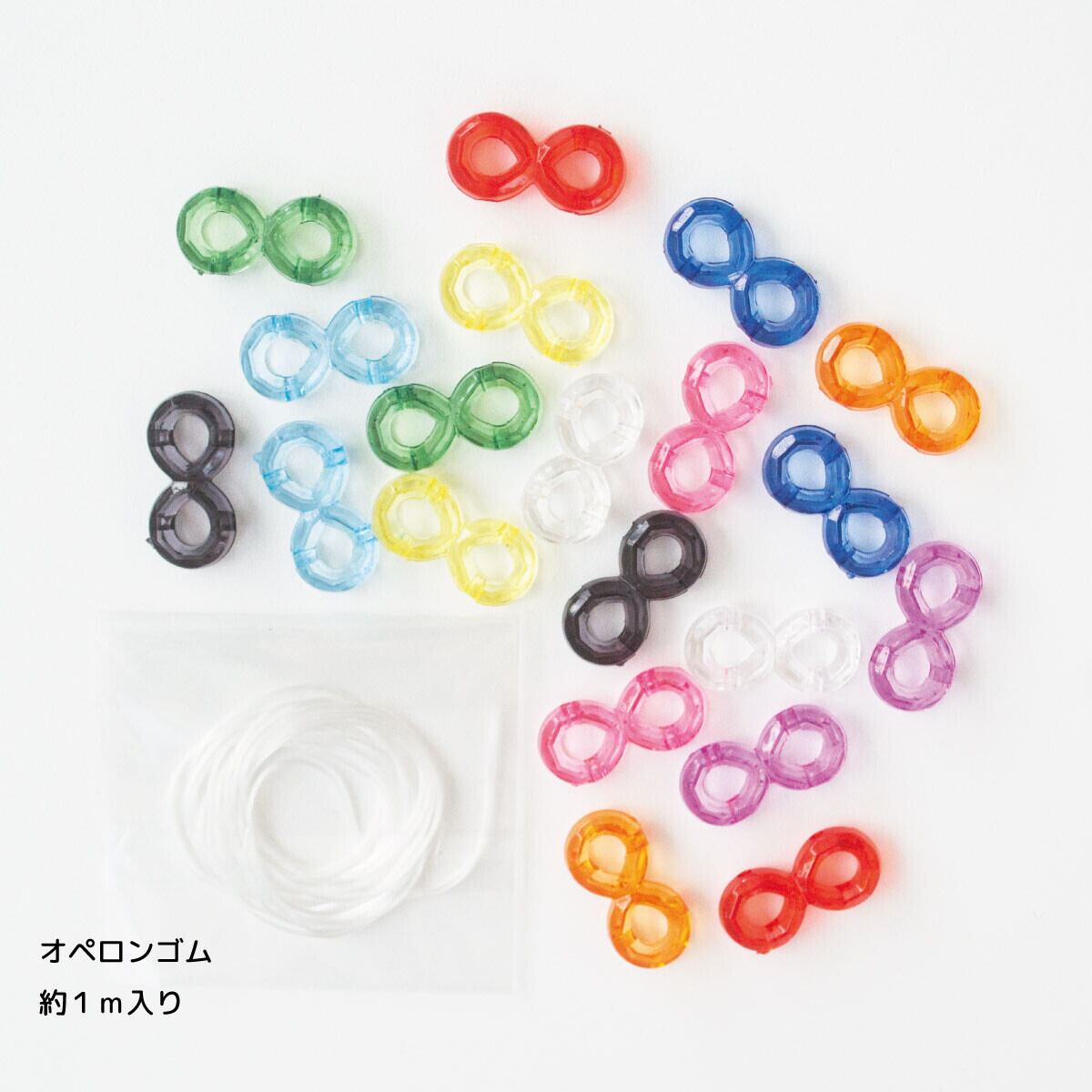1パックにコーディネートされたビーズとゴムが入っているので、