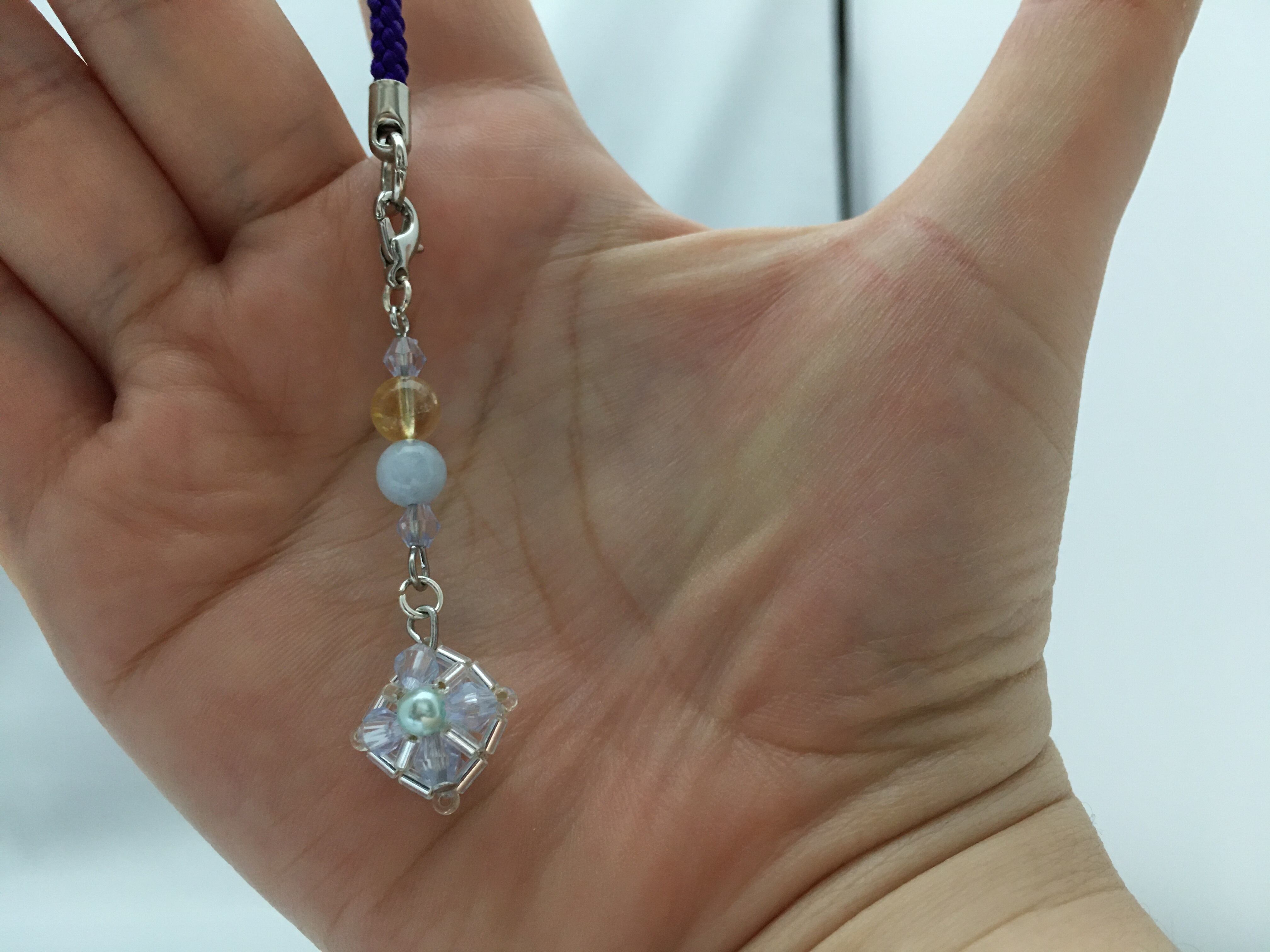 今回は、いつでも身につけられるように、ストラップにしました。また、ストラップを外して、持っているキーホルダーやネックレスに着けることも可能です。