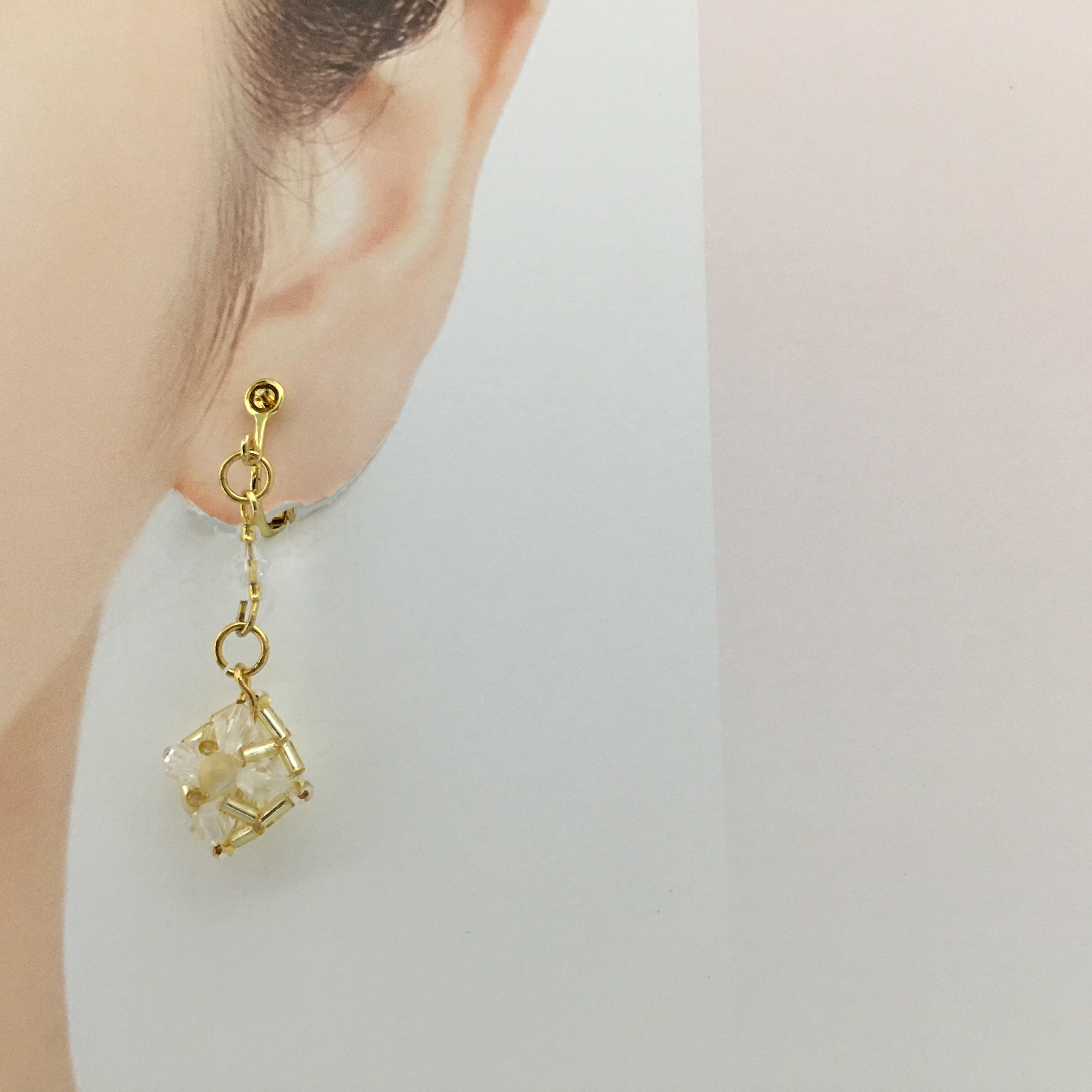 ゴールドとクリスタルと白色の可愛い十字架のイヤリングです。