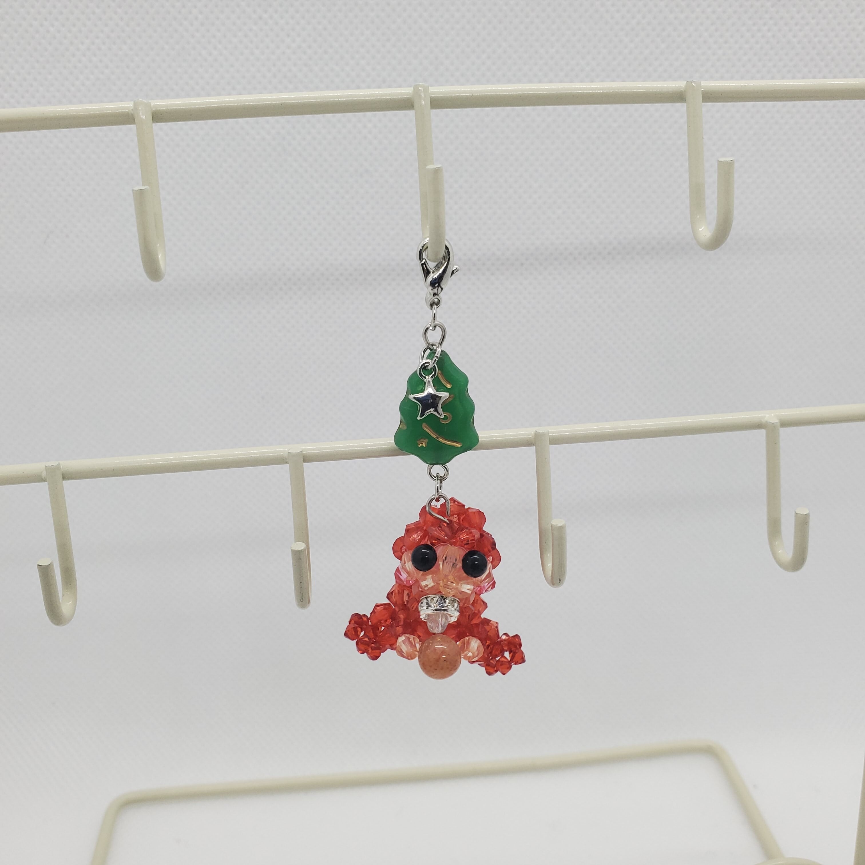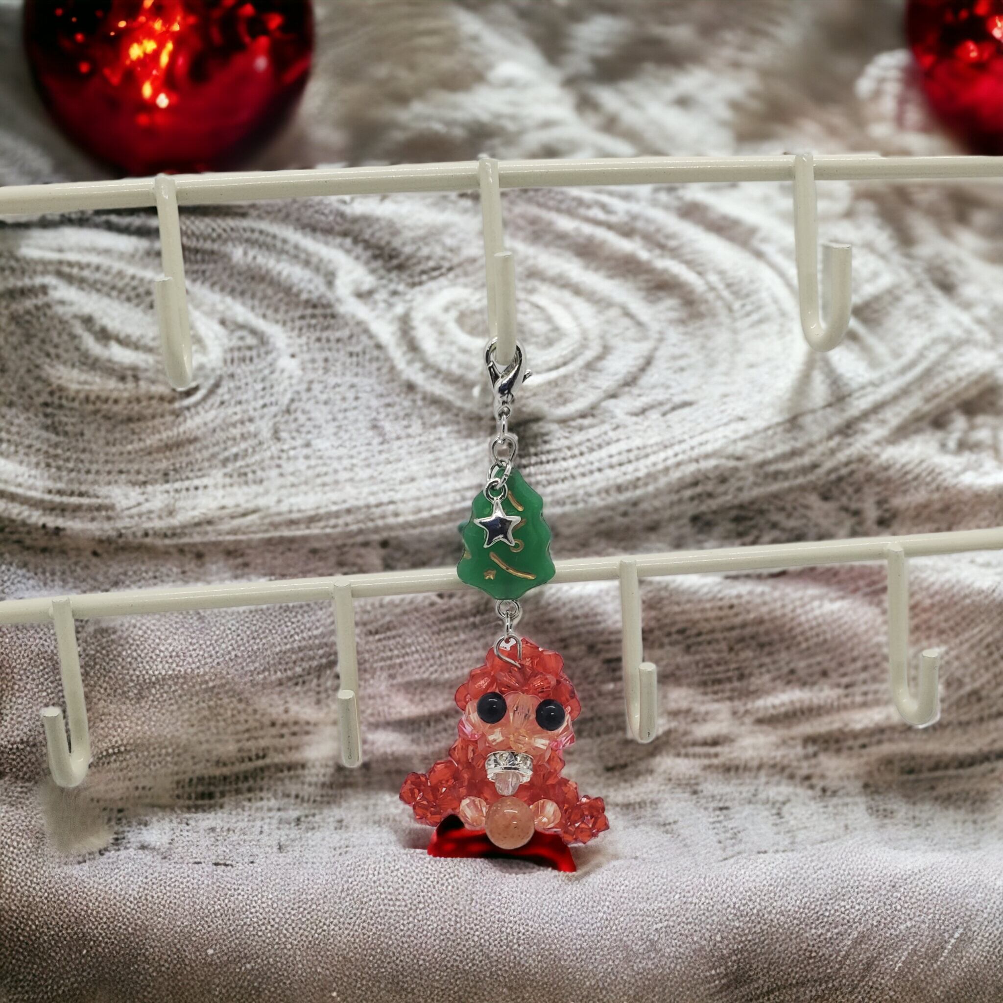 このアクセサリーは、サンストーンを持つ赤ちゃんのサンタクロースをビーズモチーフにした、クリスマスにぴったりの癒しアイテムです。両手には、サンストーンを持っているため、太陽のエネルギーを秘めたパワーストーンの効果も期待できます。頭には、緑色のクリスマスツリーのチャームをあしらい、クリスマスの雰囲気を盛り上げます。