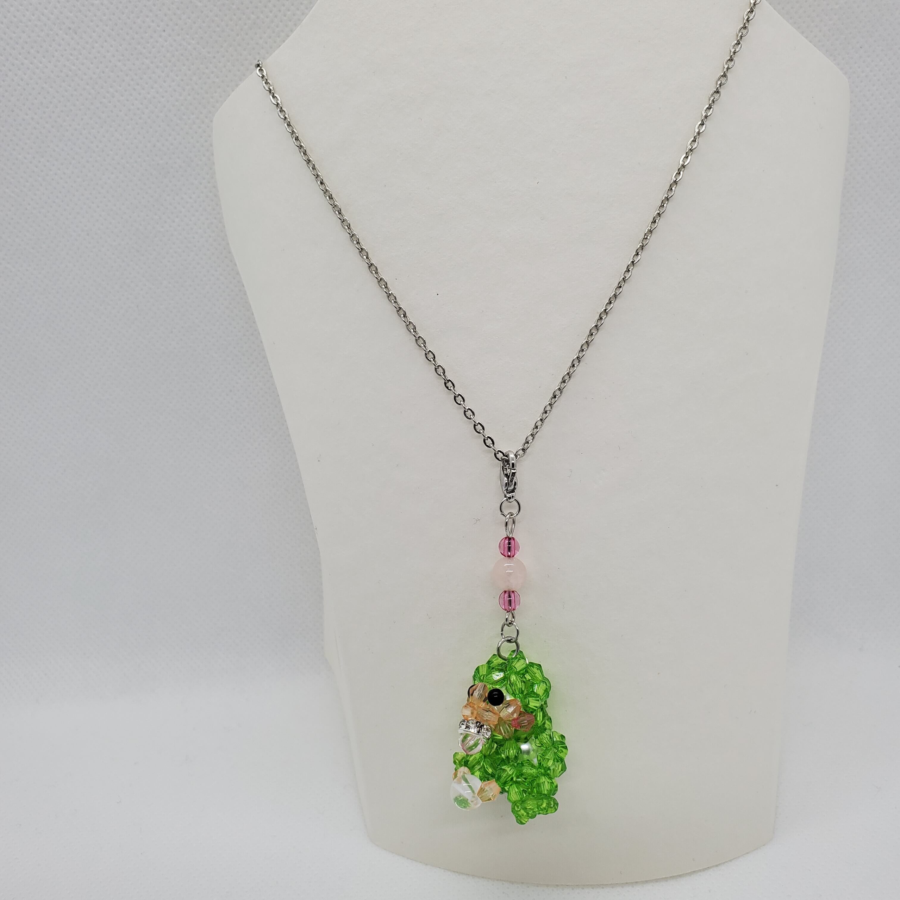 一言で水晶のパワーを語るのは難しく、仕事運、健康運、金運、恋愛運や結婚運など、その能力は実に多彩です。ただ、すべてに共通することは素晴らしい浄化と調整の作用で、肉体的には細胞を活性化し免疫力、治癒力と生命力をアップ、精神面ではストレスを軽減し情緒を安定させる強く清らかなエネルギーを持つということです。協調と保護の波動を放つ水晶は、穏やかな性質で持つ人を選ばず、インテリアからアクセサリーまでに全てに使えます。どんな石とも相性が良く、組み合わせることで相乗効果を発揮。願望成就、厄払い、守護、開運、出世、魔除けの力などに加え、霊的な領域に働きかけスピリチュアルな能力を高めるなど、まさに「万能な石」なのです。頭にも誕生石「モルガナイト」のチャームです。