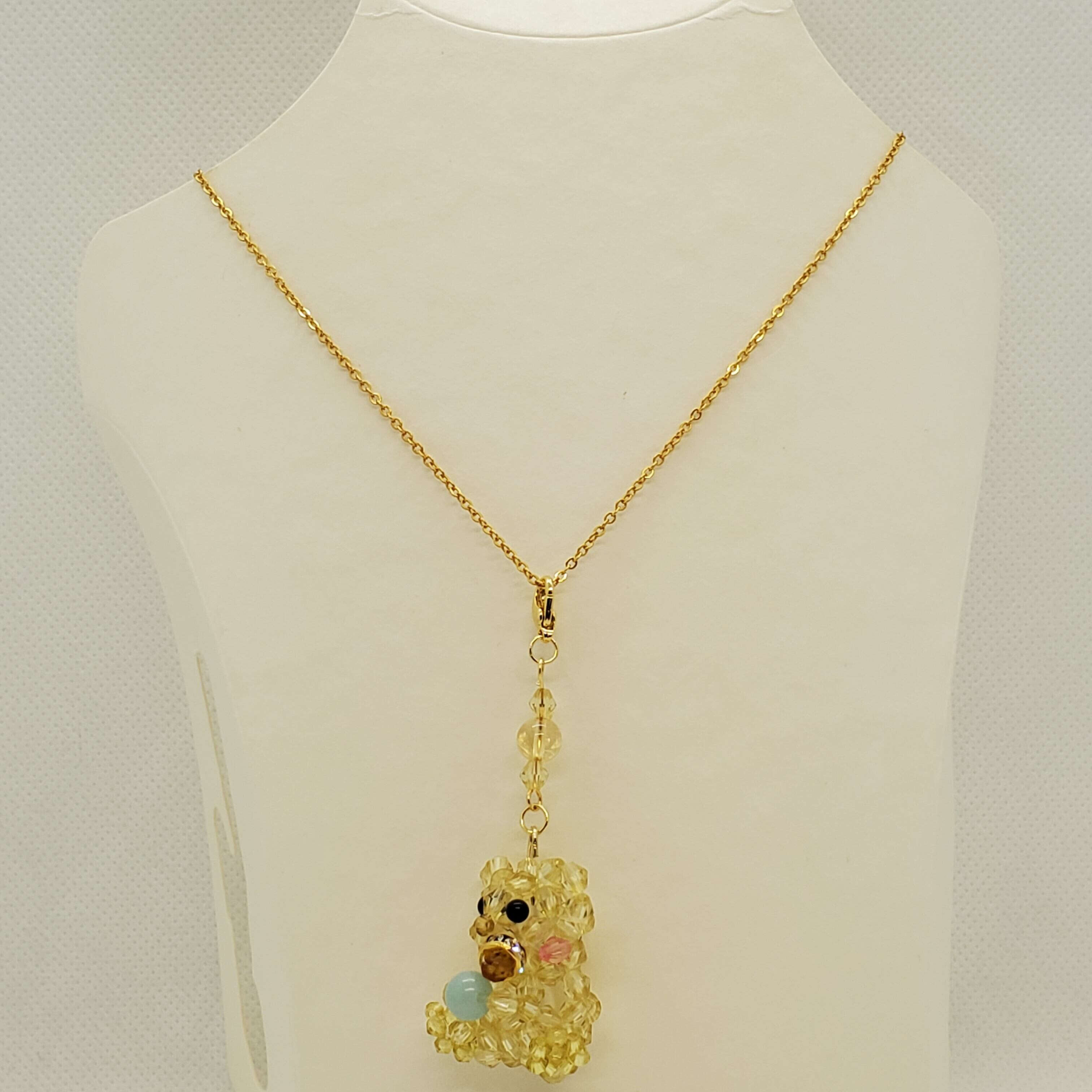 アマゾナイトの鮮やかな青とシトリンの温かみがマッチする、赤ちゃんクマのビーズアクセサリー。